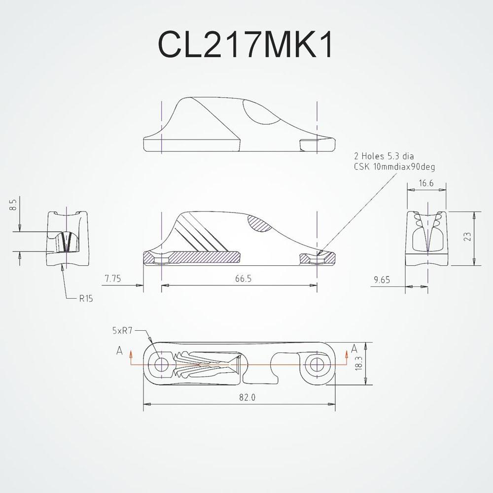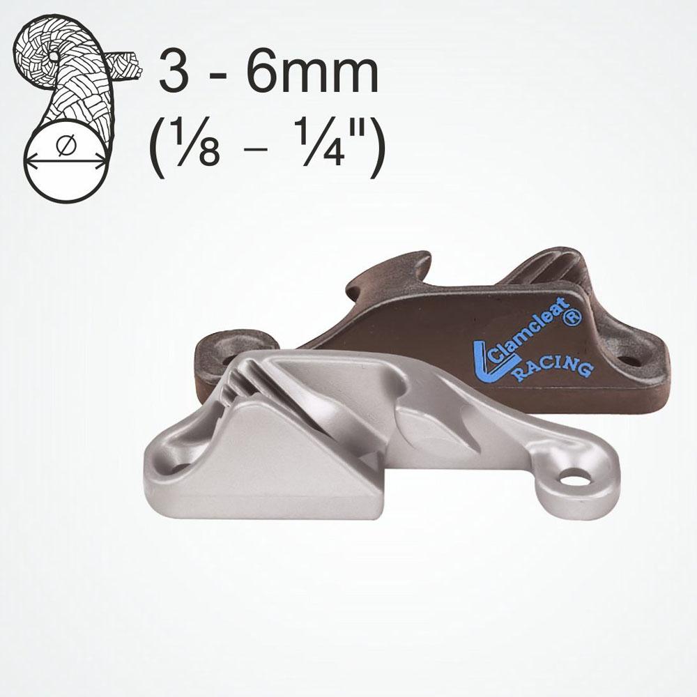 Clamcleat® aluminium klem met zij-inhaak rechts CL217 MK1 voor lijn van Ø 3 mm tot Ø 6 mm, ook wel bekend als Side Entry Mk1 Starboard, zilverkleurig. CL217MK1.
