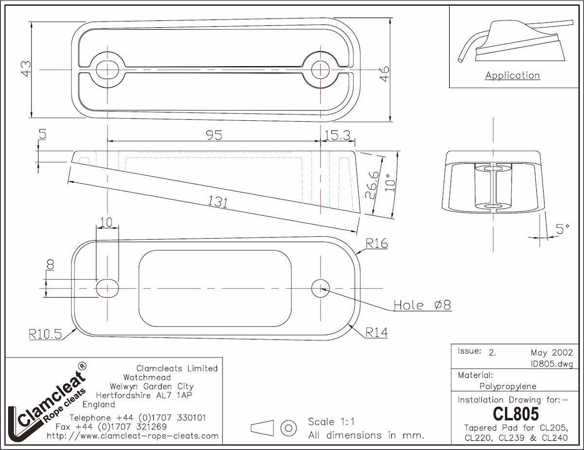 Clamcleat® wig CL805 voor klemmen CL205/CL220 – Kunststof hellend vlak voor het onder helling monteren van de Clamcleat CL205 of de CL220.