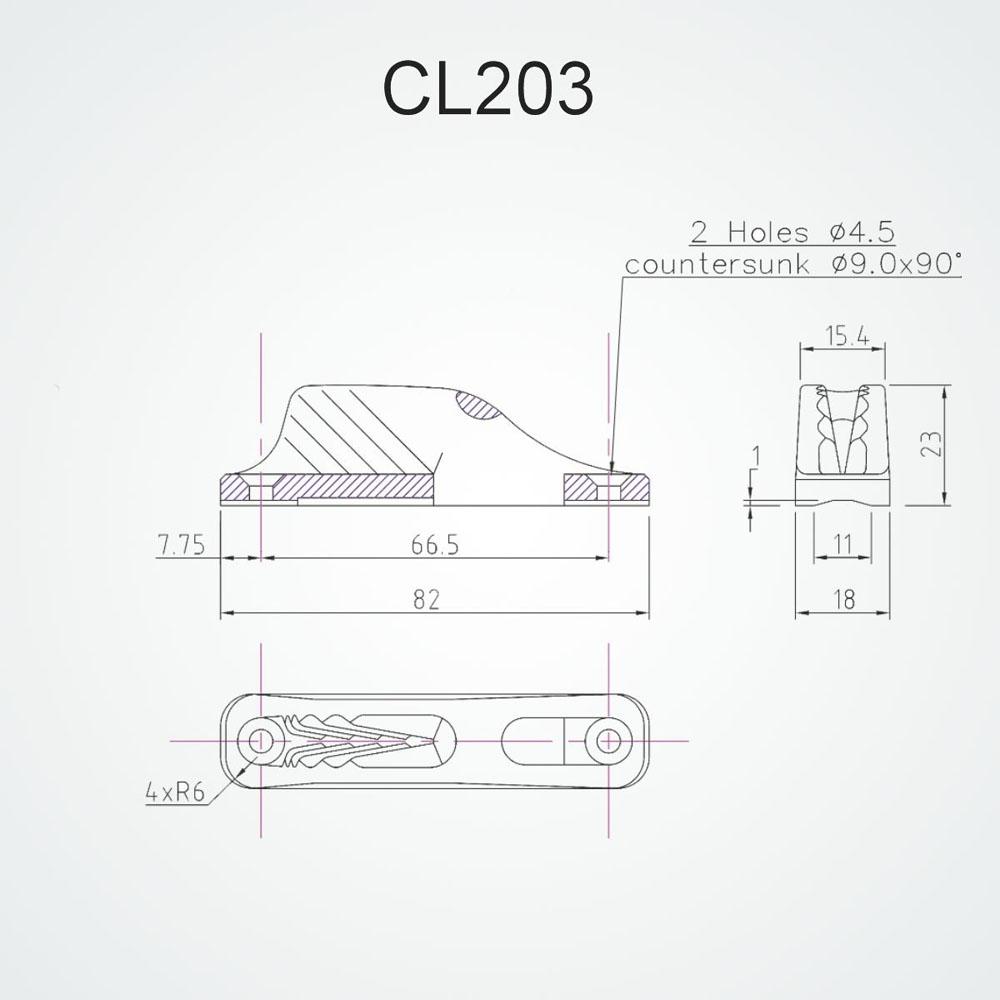 Nylon Clamcleat® CL203W klem voor lijn Ø 3 mm tot Ø 6 mm. De CL203 Junior is de opvolger van de Junior 1 en de Junior 2 en daarmee geheel uitwisselbaar.