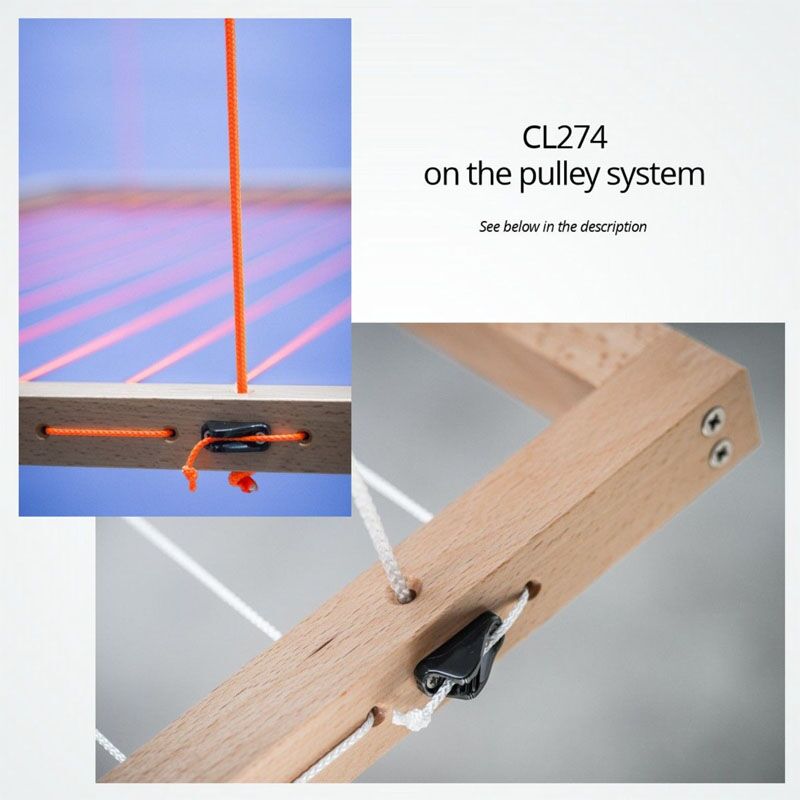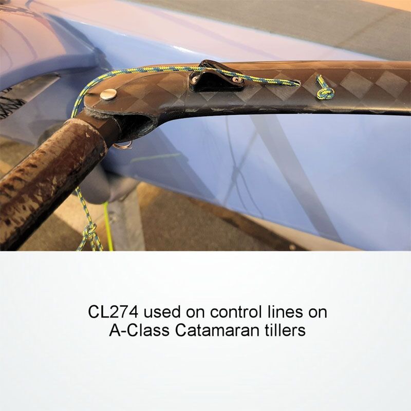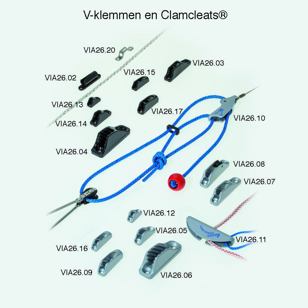 Clamcleat® klem CL274W wit nylon voor lijn 1-4 mm schroefgaten Ø 3 mm hart-op-hart 24 mm. De Clamcleat® CL274W wordt ook Open Micros White Nylon genoemd.