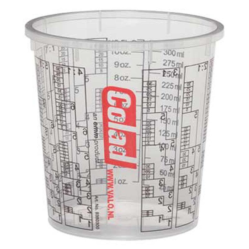 De mengbekers zijn geschikt voor eenmalig gebruik en besparen u reinigingstijd. Altijd de juiste maat voor uw klus, beschikbaar in 325/350 ml, 1150/1400 ml. Uitgevoerd met 2 mengschalen (milliliters en fluid ounces). Stapelbaar om ruimte te besparen.