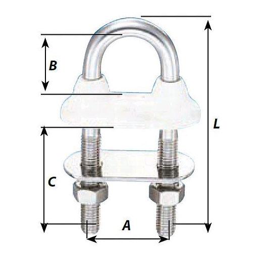 Roestvaststalen U-bout met rubber kraag voor waterdichtheid, compleet met contraplaat en bijpassende moeren, bruikbaar als wantputting, dekoog of ander bevestigingsoog voor bijvoorbeeld verstaging, blokken, looplijnen over dek, veiligheidslijnen bij de kuip etc. etc.