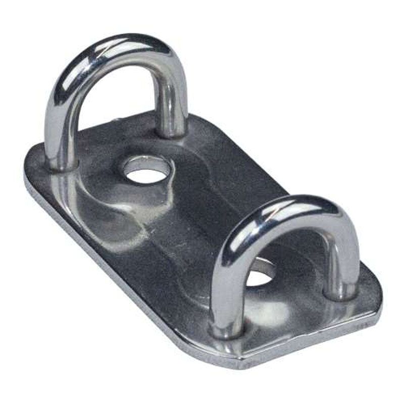 Dubbel dekoog voor Laser XD trimsysteem, blokplaat, basisplaat of mastplaat voor de blokken/blokjes voor de onderlijkstrekker / outhaul en de halstalie / cunningham. Past bij oudere Lasers precies op de schroefgaten van het leioog op het dek direct achter de mast.