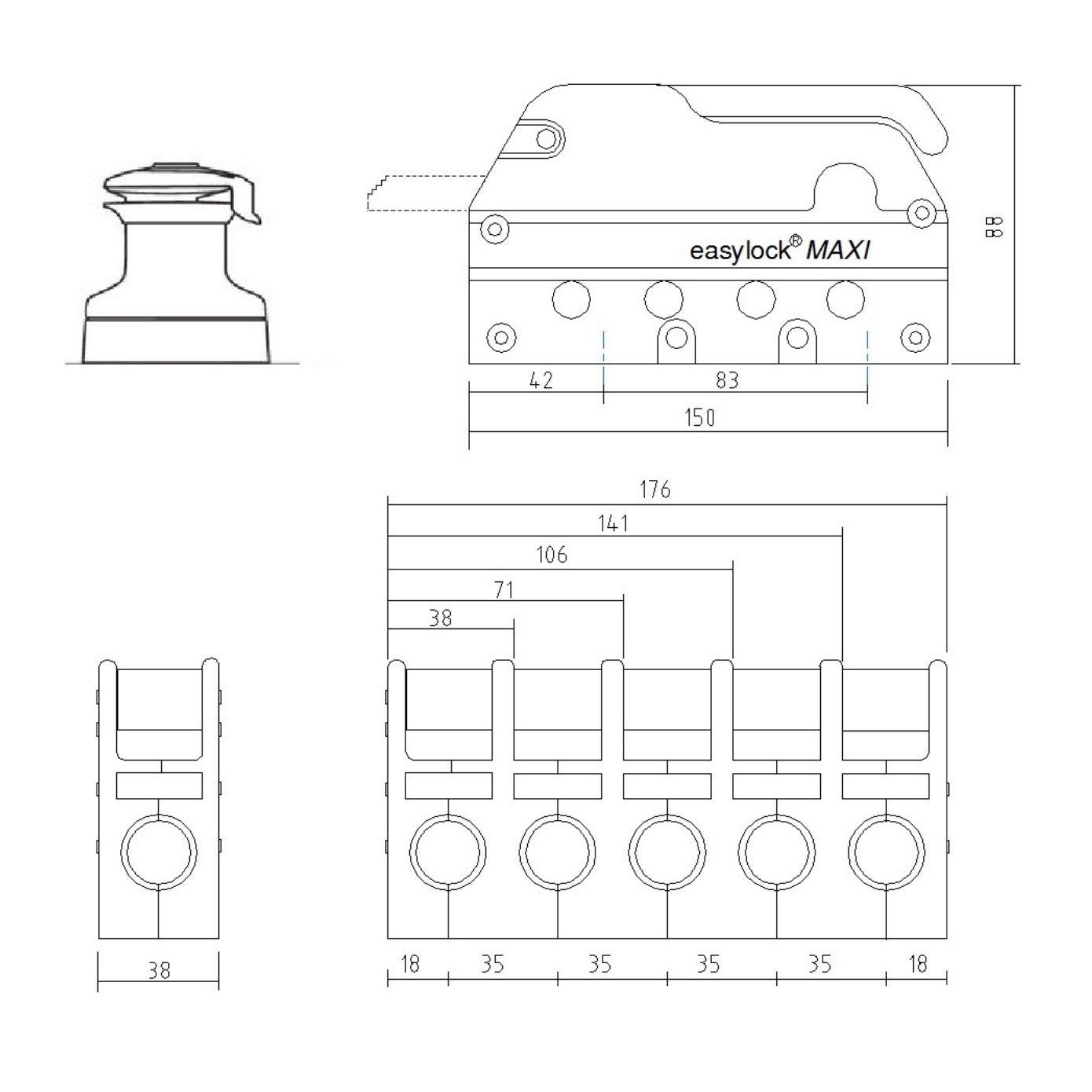 EasyLock® MAXI valstoppers voor lijn Ø 10 tot Ø 14 mm