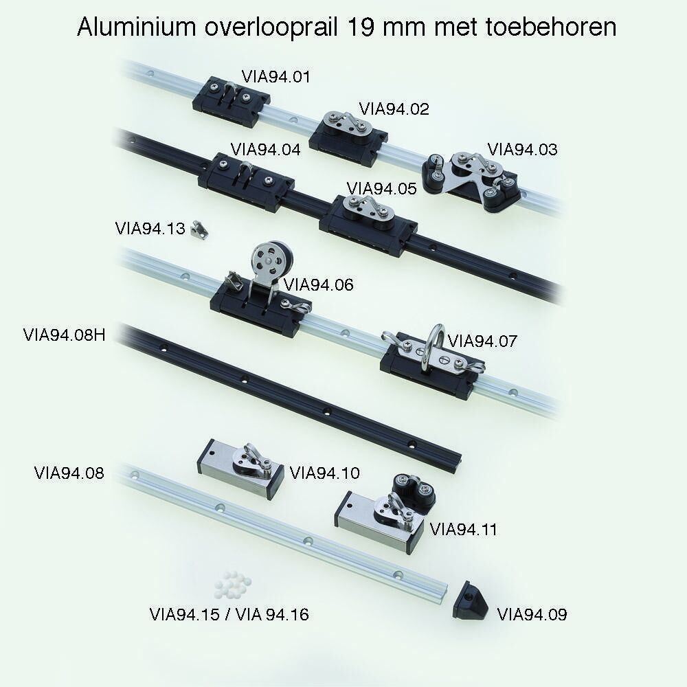 Viadana eindstop met blok en klem voor overlooprail 19 mm.