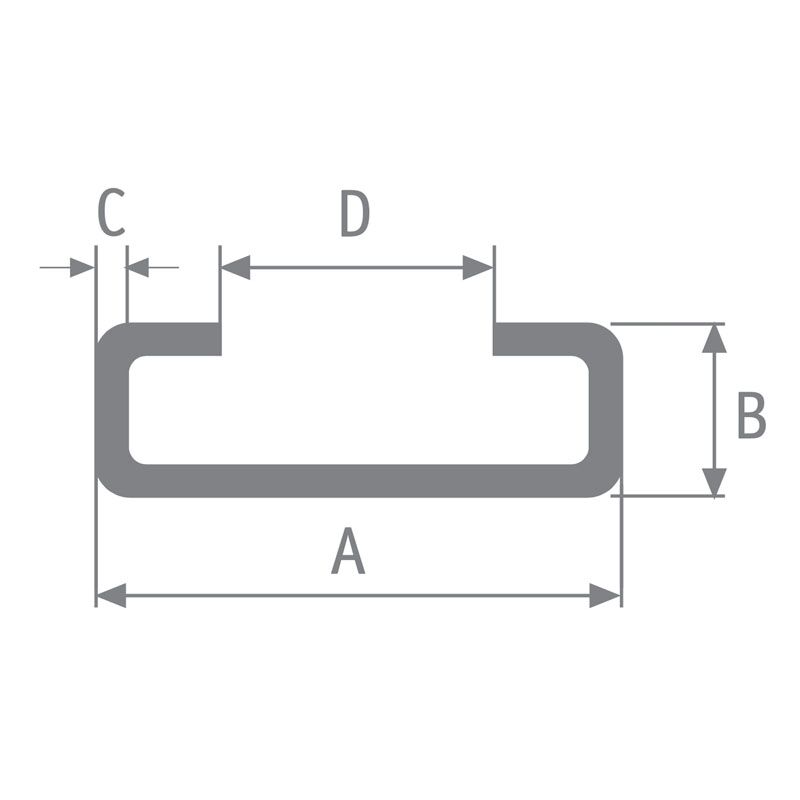 • voor rail A = 25 mm, B = 7 mm, C = 1,2 mm en D = 12 mm
