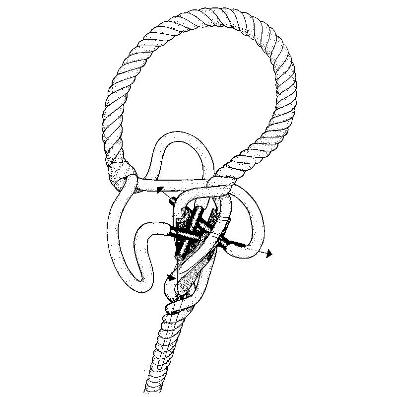 • Steek daar waar de splits moet beginnen de RVS punt van de Epiclear splitshulp in het touwwerk, qua richting van de te maken lus af