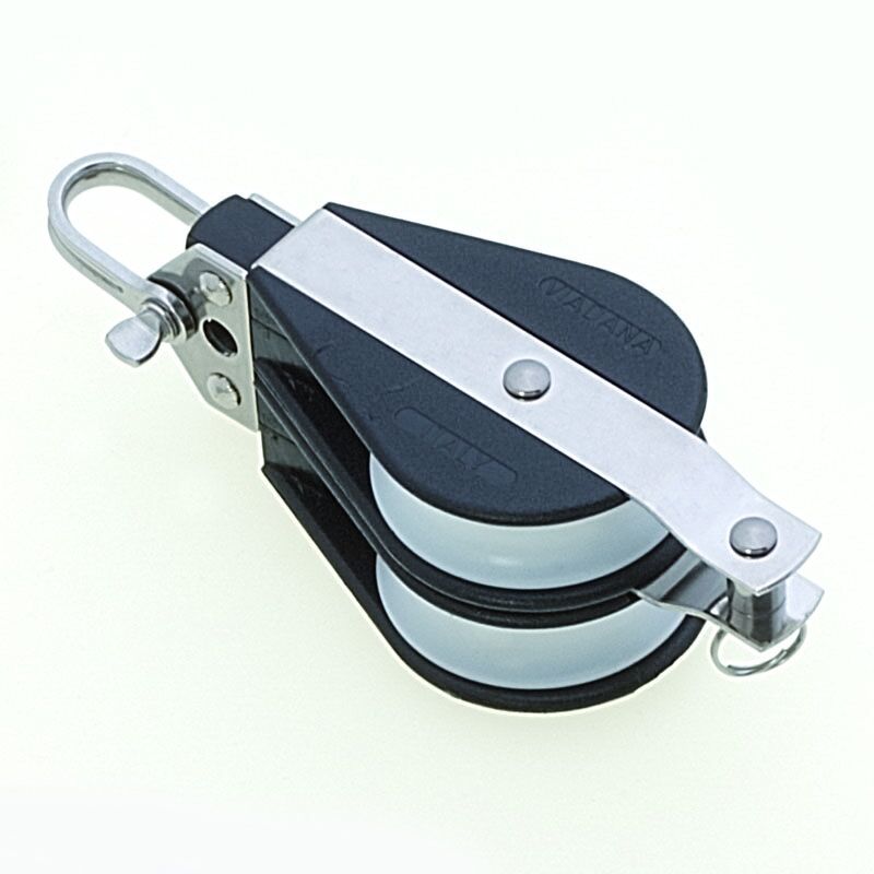 Extra sterk Delrin® dubbelschijfs blok met hondsvot voor lijn tot Ø 12 mm, VIA91.10.