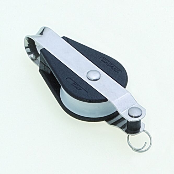 Extra sterk kogelgelagerd blok enkelschijfs, met roestrvrijstalen dubbelrijig kogellager, met hondsvot voor lijn tot Ø 8 mm, VIA89.52.