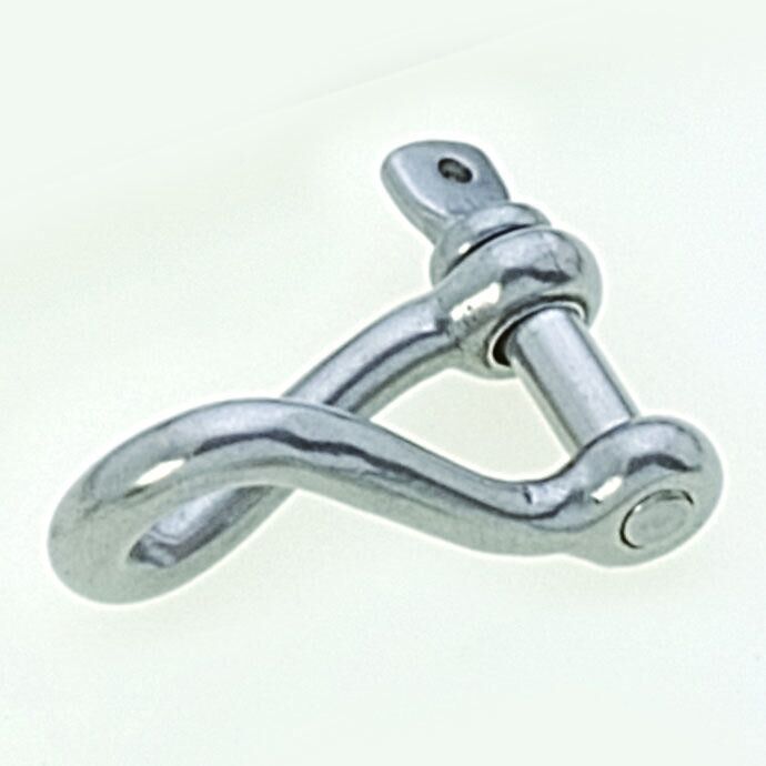Roestvrijstalen gesmede D-sluiting met een slag of twist, leverbaar in de diameters Ø 4 mm, Ø 5 mm, Ø 6 mm en Ø 8 mm uit zeewaterbestendig AISI 316 / A4.