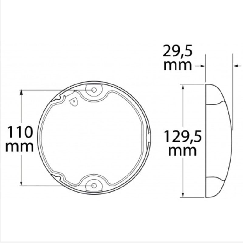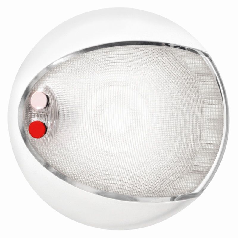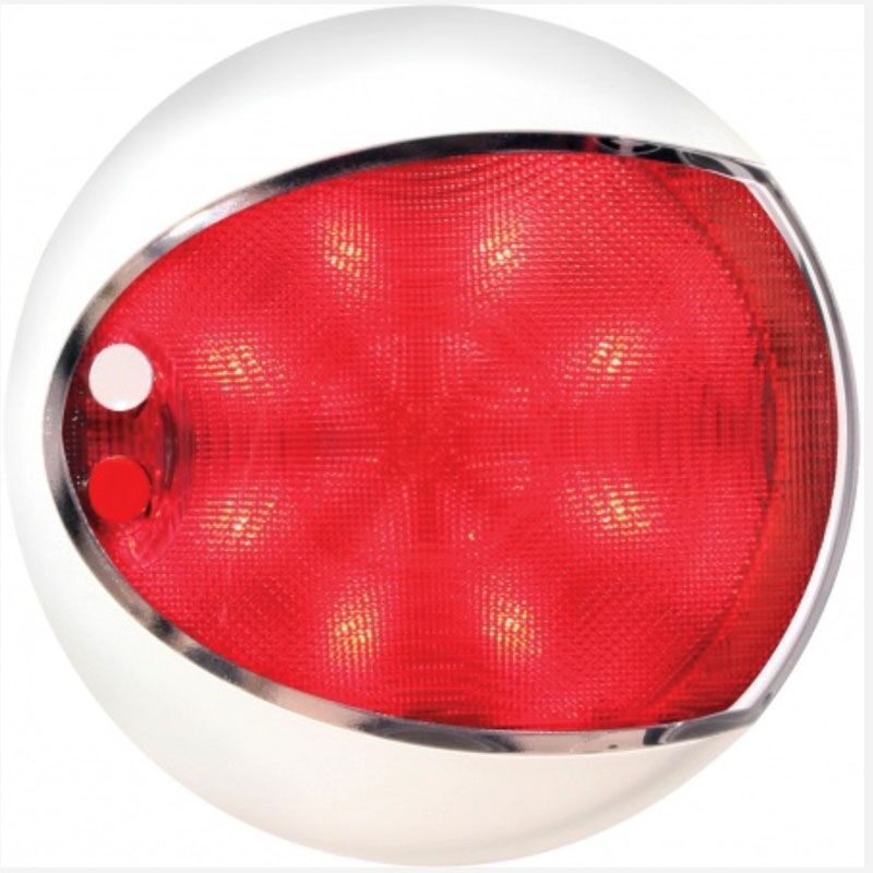 12/24V opbouw plafonnière interieur- / exterieurverlichting met dimbare rode en witte LED’s Ø 129,5 mm met wit kunststof rand en kunststof glas, schakelbaar warm wit/rood/uit. ’s Nachts aan boord wil je binnen rood licht hebben tijdens het varen: dan verlies je je nachtzicht niet als je even binnen bent. Maar als je stil ligt in een haven of voor anker dan is het ook fijn om over warm, wit licht te kunnen beschikken. Met de EuroLED 150 van Hella kan je kiezen tussen rood en warm, wit licht, en je kunt ze ook nog dimmen! De lamp onthoudt de laatste dim-stand, ook als de boordspanning er even af is.