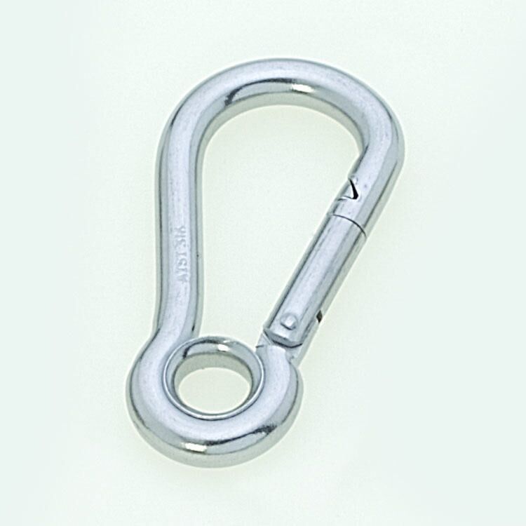Stainless steel carbine hooks with eye, mousquetons en inox à œil 6mm
