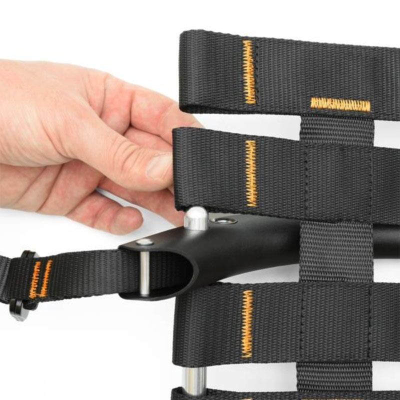 Uiterst comfortabele bootsmansstoel voor (langdurige) klussen in de mast. Met dit lichtgewicht bootsmansstoeltje van aluminium, band en touw heb je geen druk op de heupen, en kan je – als dat nodig is – langdurig klussen in de mast zonder dat de bloedsomloop naar je benen afgeklemd wordt.