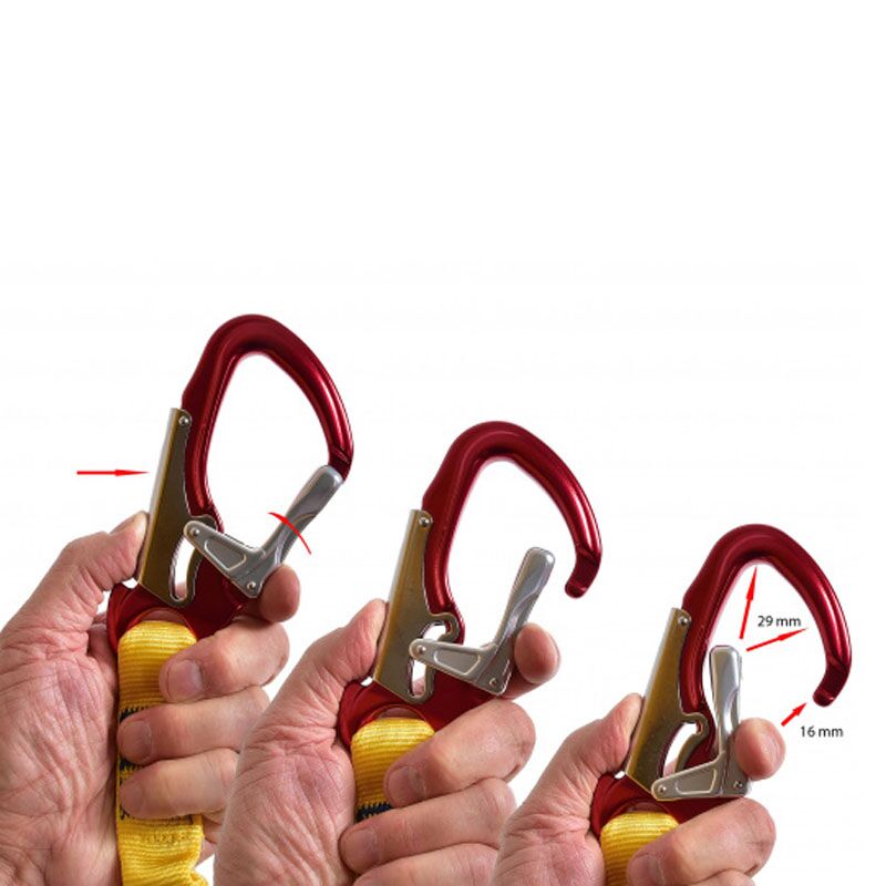 Maximale veiligheid sluit automatisch en vergrendelt de musketonhaak, in noodgevallen (indien onverhoopt onder water vast) snel los koppelbaar met de snap-shackle.