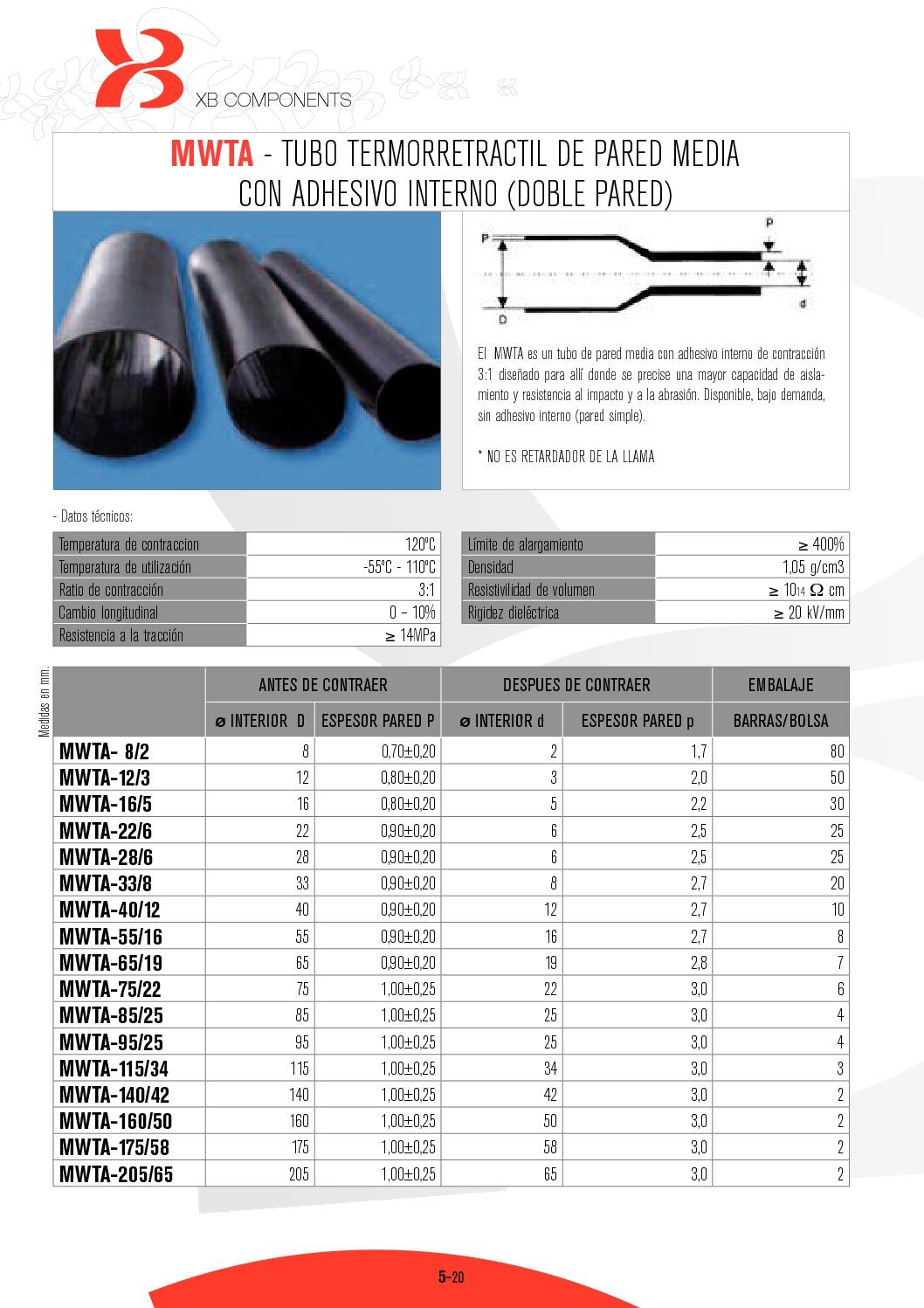 • temperatuurbestendigheid van de gekrompen kous: -55 – 110 ˚Celcius.