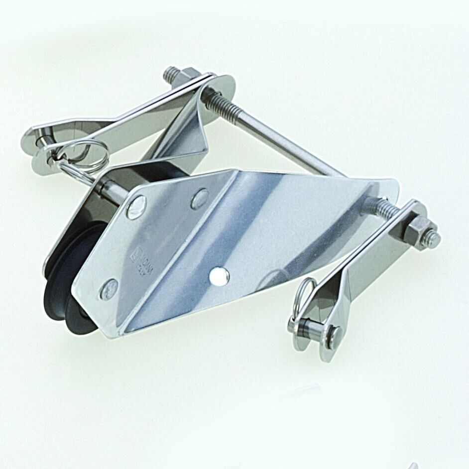Roestvrijstalen mast beslag met schijf voor (fokke)val en doorgeboute bevestiging voor verstaging, voor masten Ø 55 – 65 mm VIA53.05.