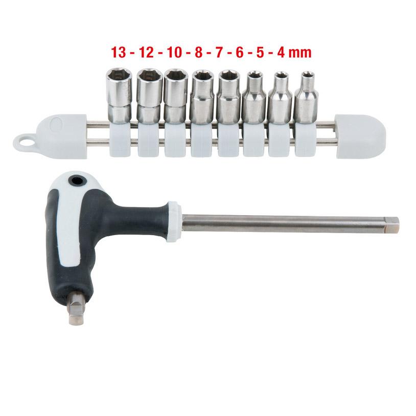 9 delige RVS doppenset van KS-tools®️ – Negen-delige edelstalen doppenset 1/4″ met doppen 4, 5, 6, 7, 8, 10, 11, 12 en 13 mm van KS-tools®️. Passend op standaard zeskant moeren/bouten van M2 tot en met M8.