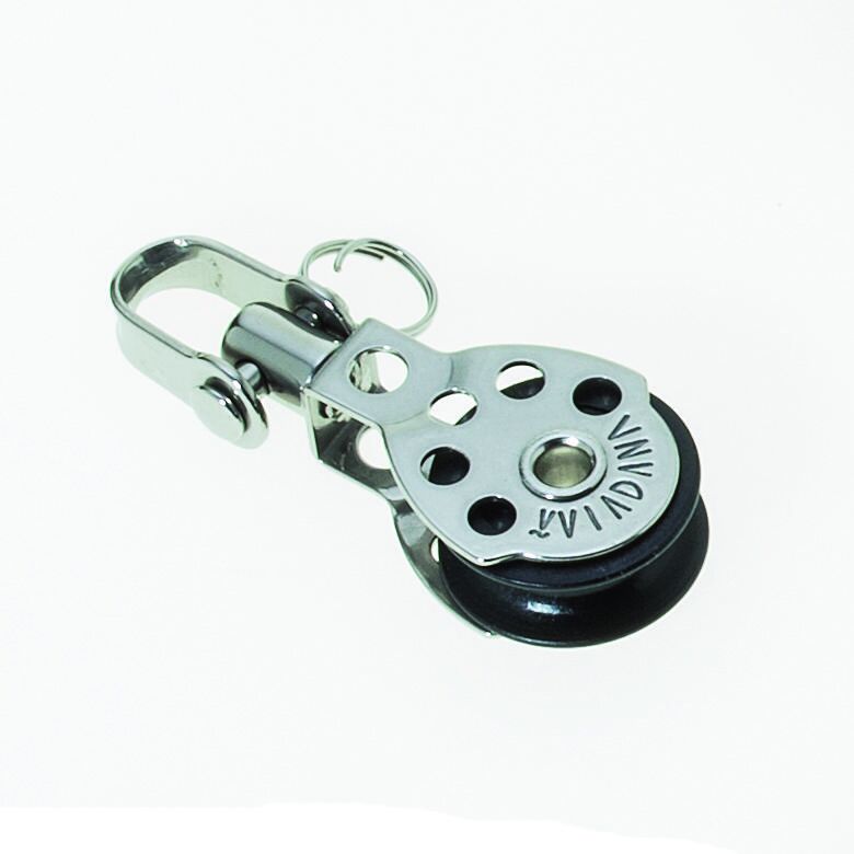 RVS microblok met wartel en D-sluiting voor lijn Ø 8 mm – Roestvaststalen microblok met wartel en D-sluiting voor lijn tot Ø 8 mm