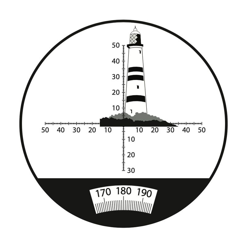 Afstandbepaling: de afstand in kilometers is de hoogte of lengte van het object gedeeld door de gemeten hoek in mil (artillerie-promille). 1 mil op een afstand van 1000m = 1m.