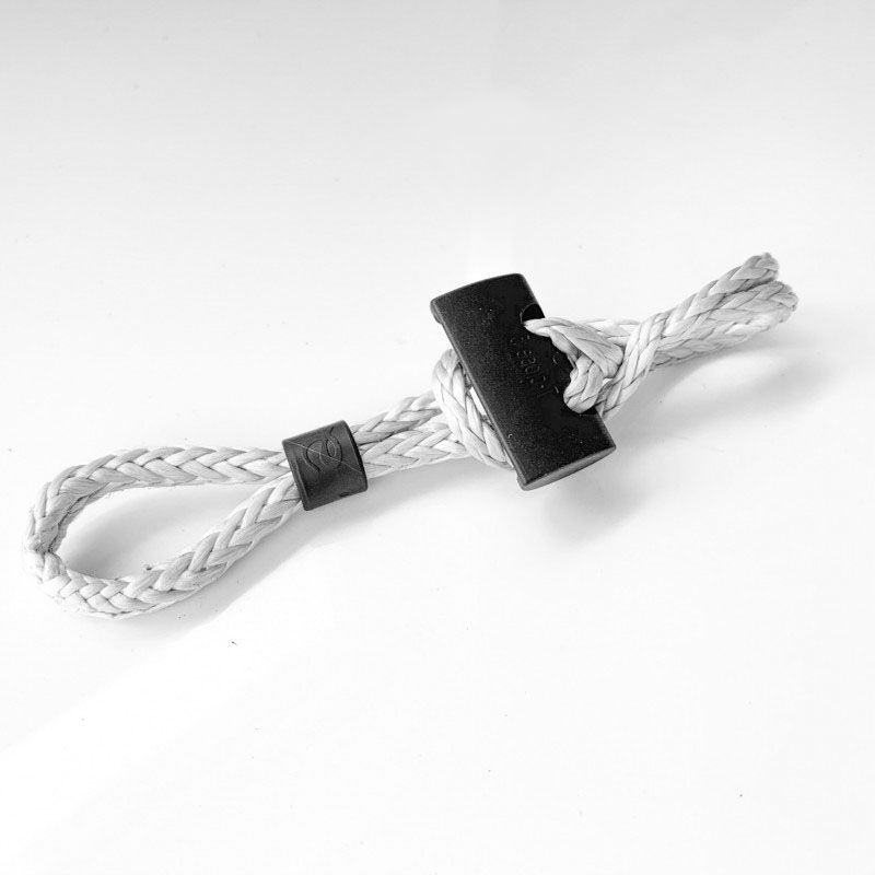 Dyneema® soft-shackles MT C van Nodus Factory®, met aan een zijde een vaste lus en aan de andere zijde een lus die eenvoudig en snel gesloten en geopend kan worden, ook met koude vingers.