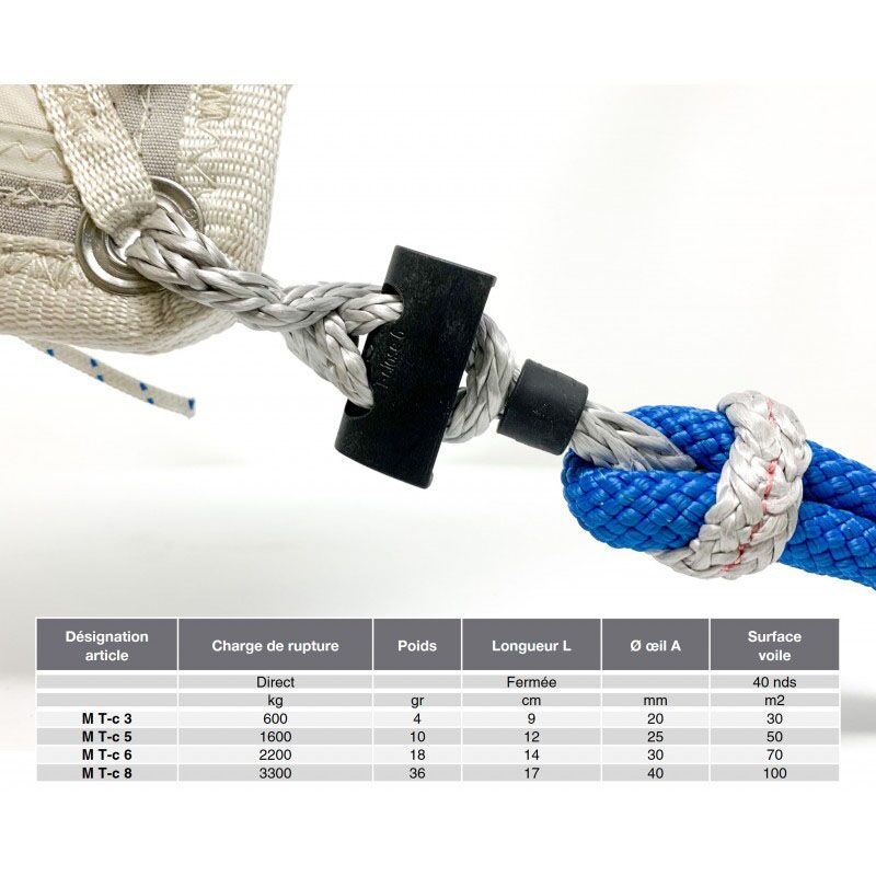 MT-C Dyneema® touw-sluiting voor schoot, val, smeerreep, reeflijn, dirk, kraanlijn etc./ MT-C Mousqueton de drisse & ecoute / MT-C Halyard & sheet snapshackle