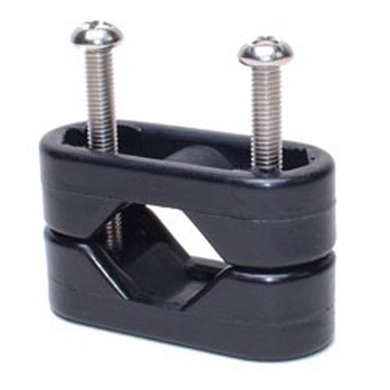 Nylon buisklem of railingklem voor het monteren van beslag of accessoires (kikkers, leiogen, klemmen, etc.) aan scepterpalen, preekstoelen of andere buizen tussen Ø 16 en Ø 25 mm.