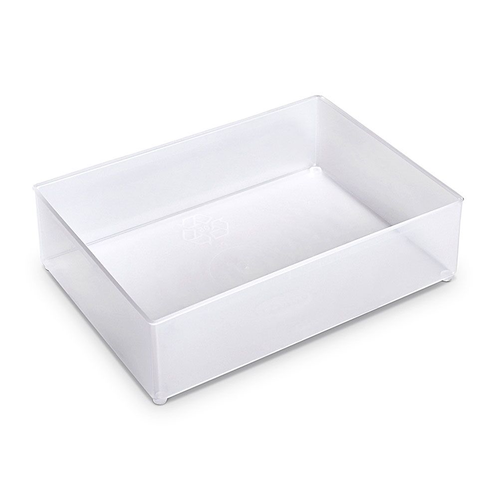 De genoemde maat is de inwendige maat van het inzetbakje gemeten boven aan de rand van het bakje – kunststof bakjes lopen altijd iets taps toe, dus de maten zijn onderin iets kleiner.