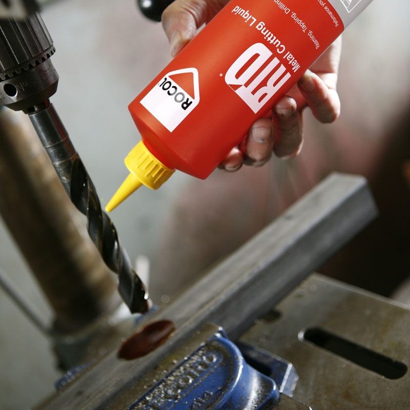 Roestvaststaal is berucht lastig te bewerken. Je moet blijven verspanen tijdens het boren, daar is veel kracht voor nodig en zonder de juiste smering krijg je dan veel wrijving. Door die wrijving ontstaat warmte die het roestvaststaal dusdanig kan verharden dat het niet meer bewerkbaar is. Gewone snijolie of tapolie wordt door die warmte dun vloeibaar waardoor het wegloopt of het verdampt. RTD van Rocol plakt aan het gereedschap waardoor het veel langer blijft smeren. RTD is dik vloeibaar en kan als toevoeging gebruikt worden in snijvloeistof op waterbasis, maar kan ook puur gebruikt worden door af en toe een druppel op de boor aan te brengen.