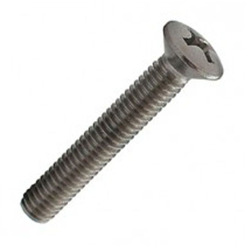 Bolverzonkenschroef M4 van zeewaterbestendig roestvrijstaal A4 met Phillips kruiskop aandraaivoorziening.