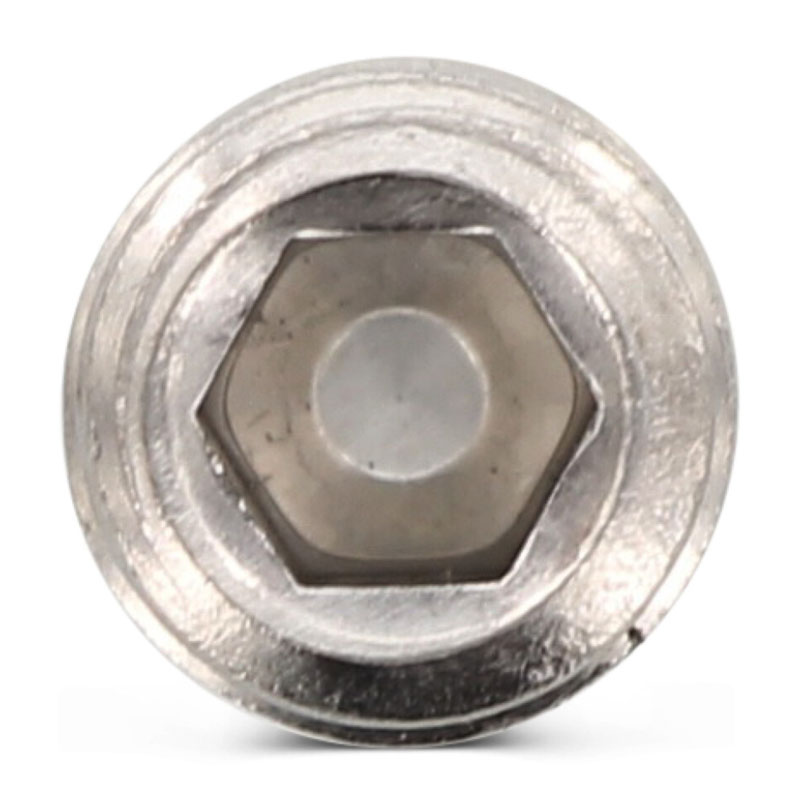 A4 Roestvaststalen inbusschroef zonder kop (stelschroef met binnenzeskant en afgeschuind vlak uiteinde) M6 volgens DIN 913 / ISO 4026.