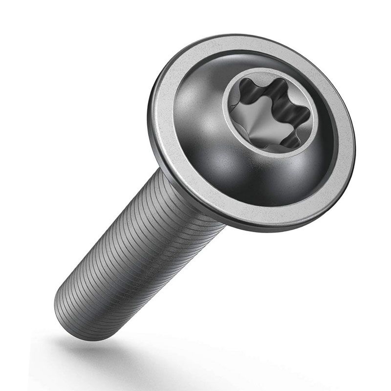 Flange button head screws with six lobe drive, torx drive, fullthread. Pan head torx-screw with flange. Hexalobular socket button head