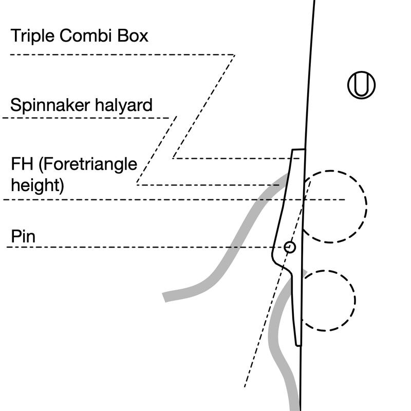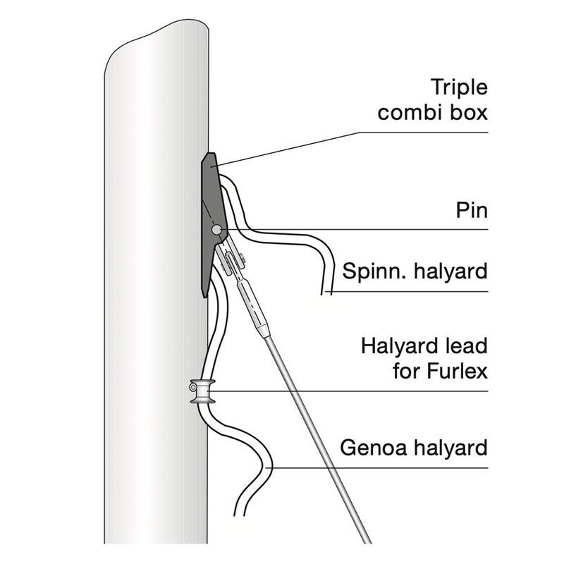 Aluminium Seldén triple box 505-011 voor fokkeval, voorstag en spinnakerval.