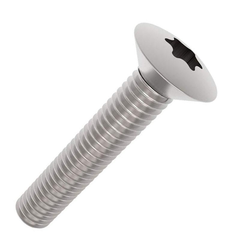 Bolverzonkenschroef M4 van zeewaterbestendig roestvrijstaal A4 met torx/TX/T-ster aandraaivoorziening TX20.