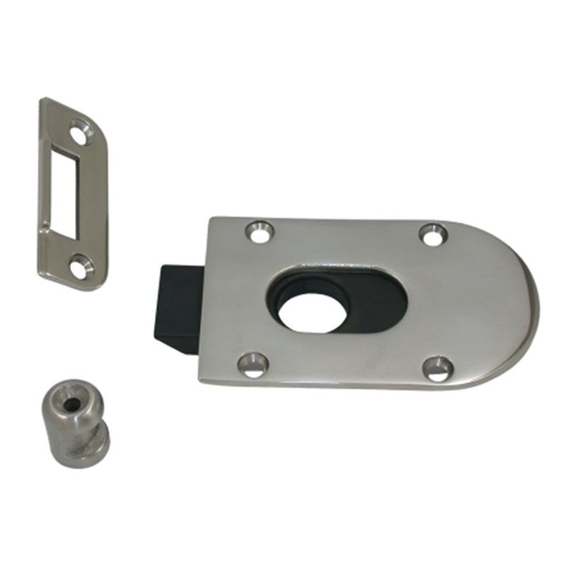 Fraaie, gepolijste verende grendel voor verzonken inbouw bij deuren, deurtjes of lades.