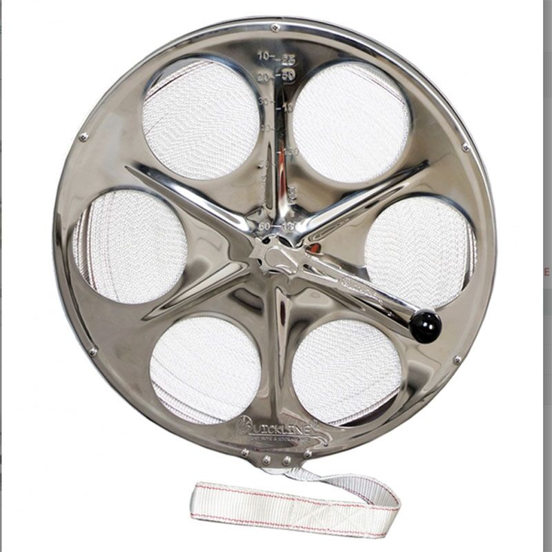 Roestvaststalen spoel met UV-bestendig polyester band met een breeksterkte van 2000 kgf, naar keuze met 40, 60 of 80 m band. Voorzien van een maat-indeling waarop af te lezen is hoeveel lijn ongeveer is uitgerold. De band loopt tussen twee Teflon® rollen waardoor zoveel mogelijk water uit de lijn wordt geperst bij het opwikkelen. De handle is multifunctioneel en kan vervangen worden door een standaard lierhendel. De meegeleverde handle is multifunctioneel en kan gebruikt worden als (reserve) lierhandle, harpsleutel en als sleutel voor 3 verschillende algemeen gangbare vuldop-sluitingen (voor water, brandstof, vuilwater etc.).