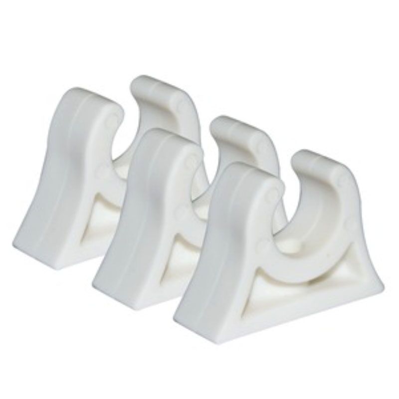 Santopreen universele klembeugel of clip van synthetisch rubber voor het zeevast en zichtbaar opbergen van uitrusting zoals zaklampen, boothaken, noodvuurwerk, gereedschap etc. etc. Deze klembeugels hebben als extra voordeel dat ze relatief zacht zijn waardoor de kans op verwonding klein is als je bij zware zeegang tegen een dergelijke klembeugel valt.