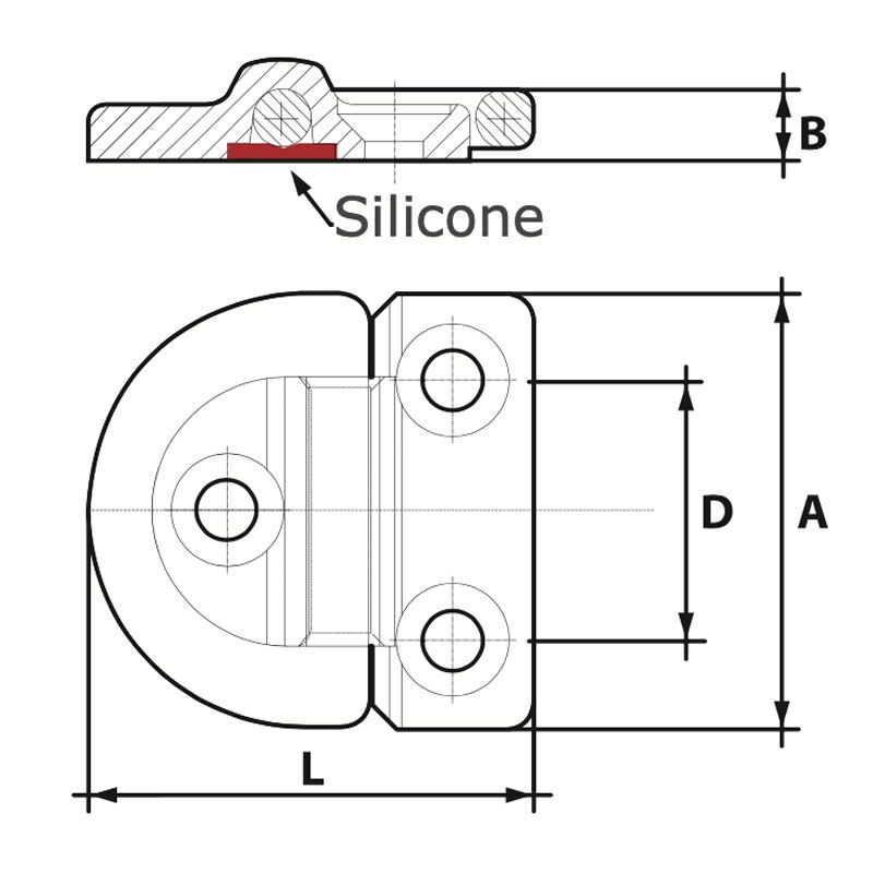 Ideaal roestvrijstalen scharnierend oog voor de bevestiging van veiligheidslijnen in of bij de kuip, looplijnen over dek of een wegneembaar kotterstag. Uiterst solide en plat weg te klappen indien niet in gebruik. Kompleet met rubber frictieplaat.