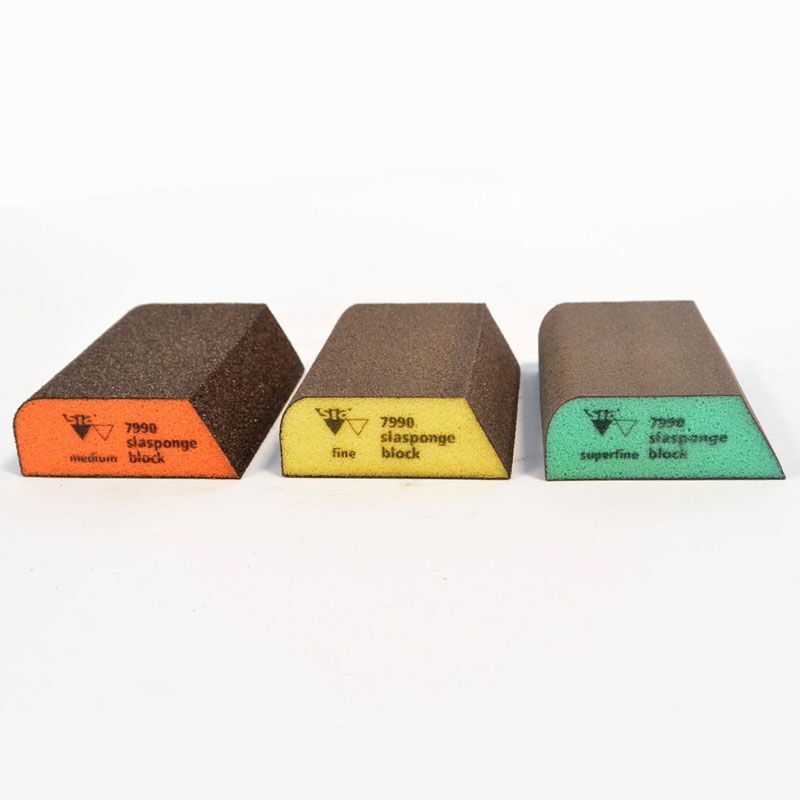 LET OP: deze sponzen zijn uitsluitend bedoeld voor droogschuren, dus zonder water! De spons dient alleen maar als flexibele ondersteuning van het schuurmiddel zodat het zich aanpast aan de contouren ven het te schuren object.