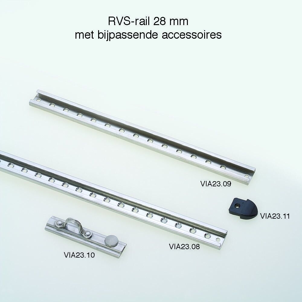 Roestvrijstalen slede met klemschroef en oog voor rail 28 mm VIA23.10.