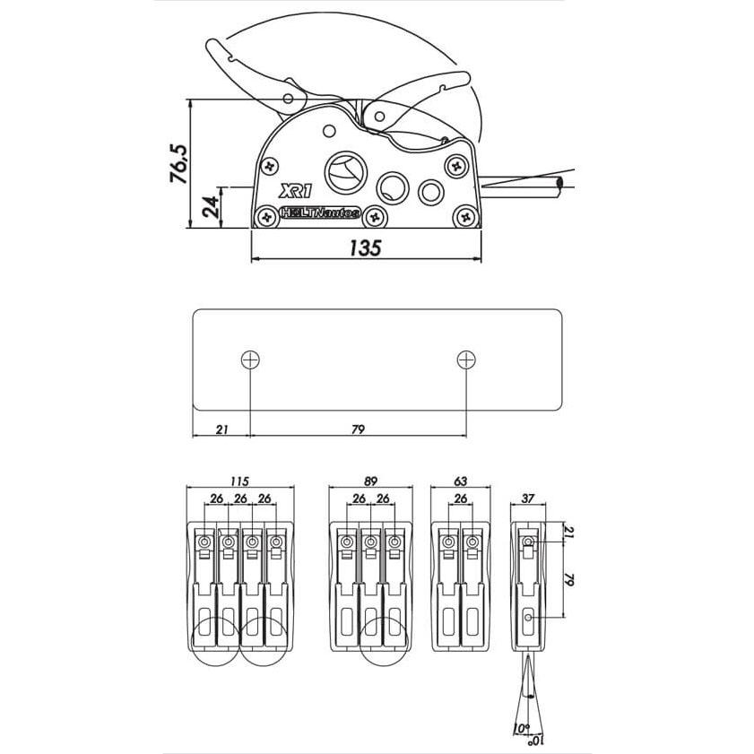 Valstoppers van Holt-Nautos® leverbaar in twee groottes: XR1 en XR2 voor lijndiameters resp. Ø 8-12 mm en Ø 10-16 mm en in drie uitvoeringen: enkel (single), dubbel (double), drie-voudig (triple) en vier-voudig (quad) voor resp. 1, 2, 3 of 4 lijnen.
