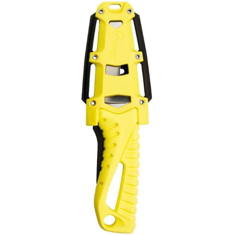 Veiligheidsmes Wichard Offshore Rescue Knife Fluo 10192 – ideaal om in noodsituaties met één haal een lijn door te kunnen snijden. Duikersmes met fluoriserend handvat en idem schede. Het mes zit vergrendeld in de schede en kan er dus niet per ongeluk uit vallen of losschieten.