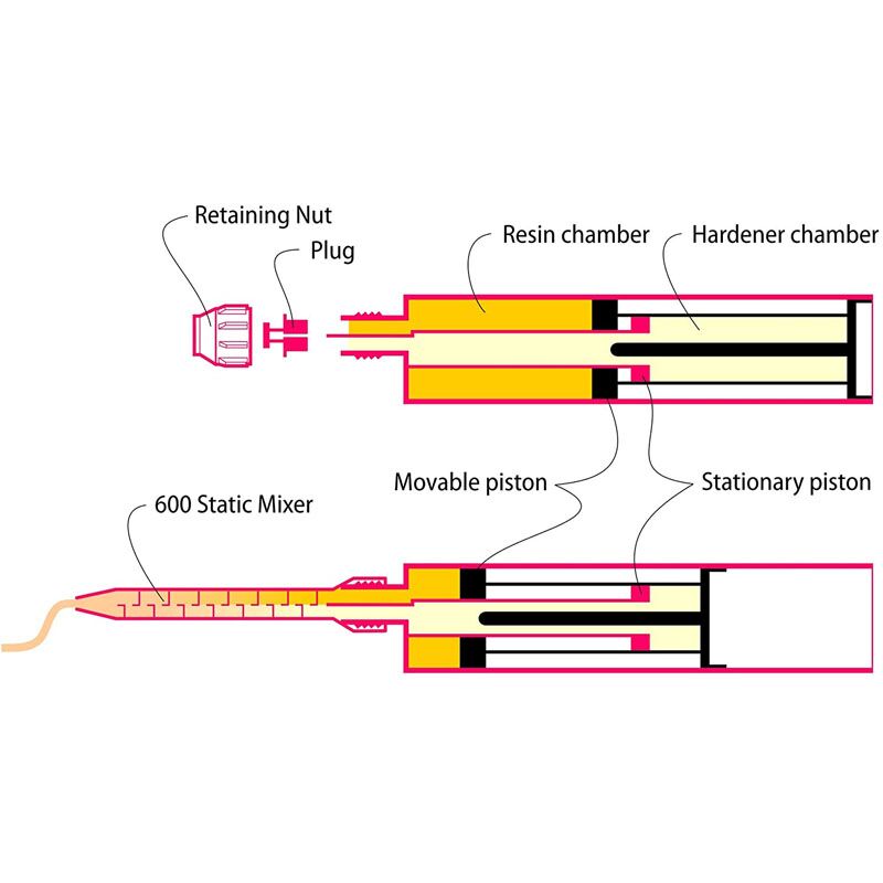 Six-10 epoxyhars is verpakt in een handige 190ml. lijmkoker voorzien van een zolfdoserende mengtuit. Zo kan met een lijmpistool elke gewenst hoeveelheid epoxymengsel op eenvopudige wijze snel en correct worden gedoseerd.